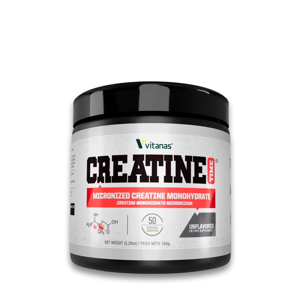 Creatine Time, una fórmula avanzada de creatina monohidratada micronizada en polvo.